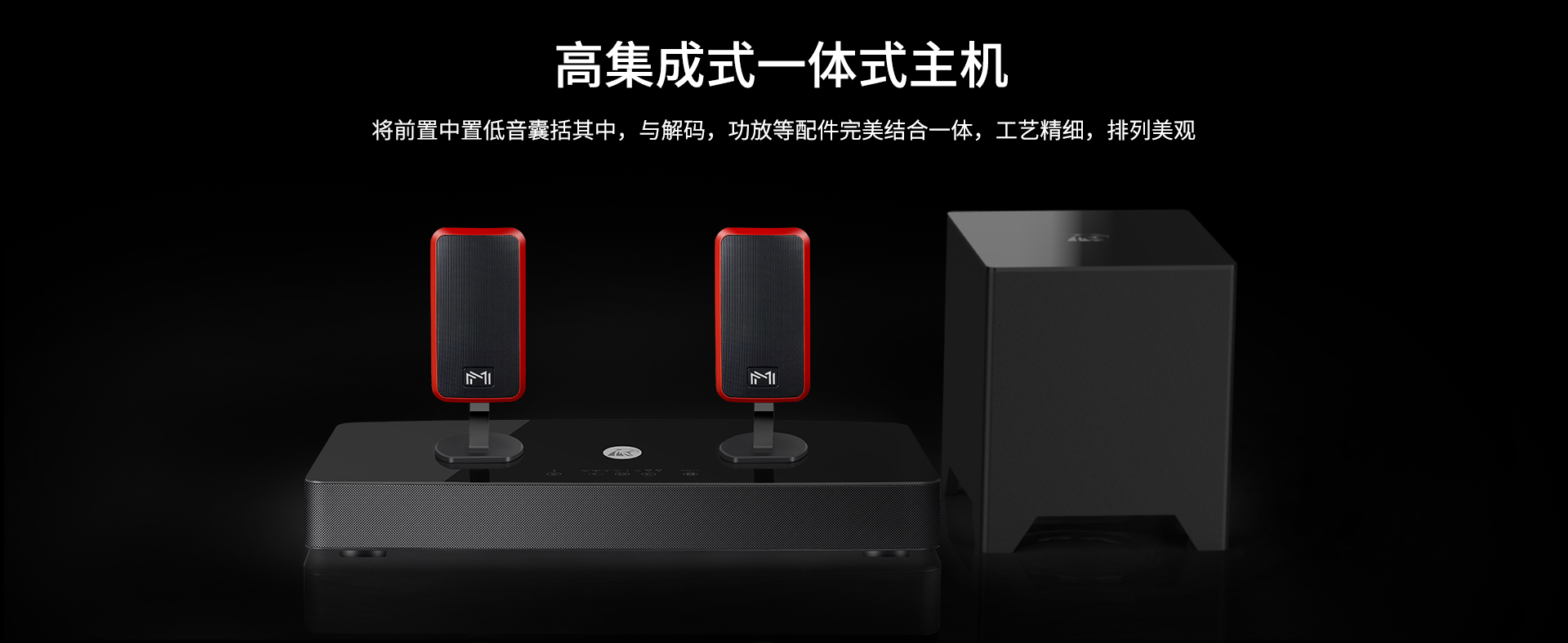 √ 一体式主机包含中置,左右主箱,双低音,解码,功放等,集成度高,接线简洁。
