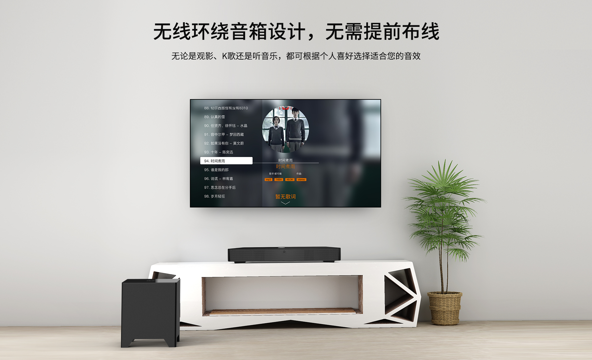 √ 无线音箱可一键切换,可在前置主箱与后置环绕相互切换,适合不同客厅环境。